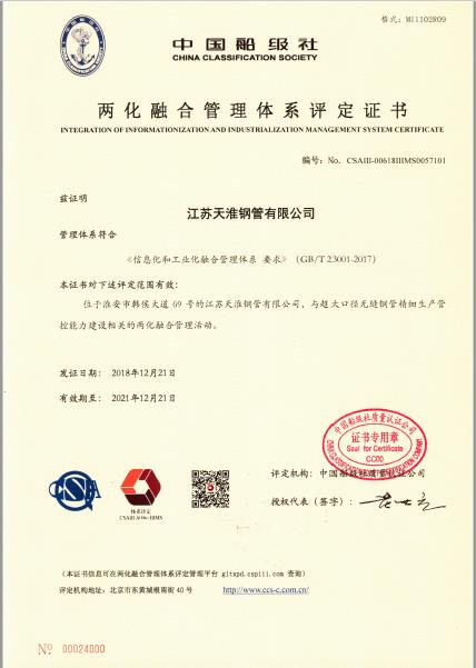 两化融合管理体系评定证书